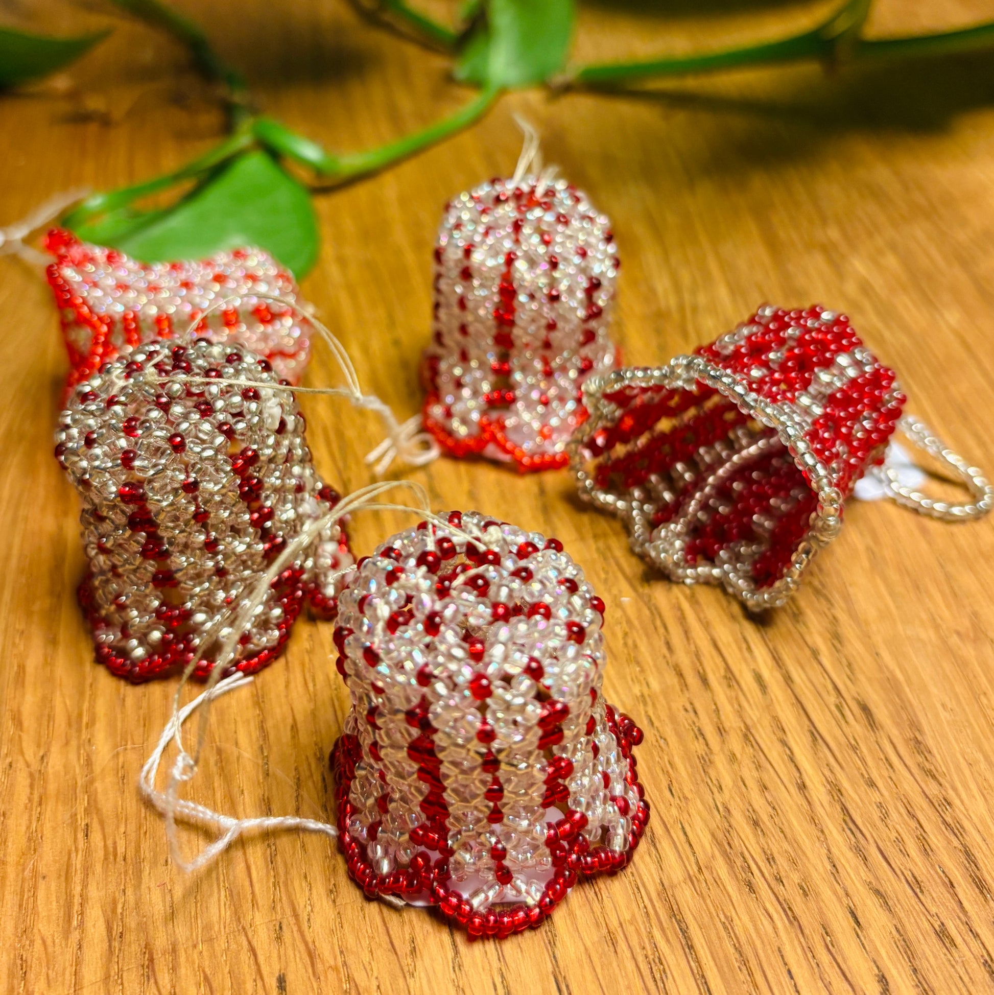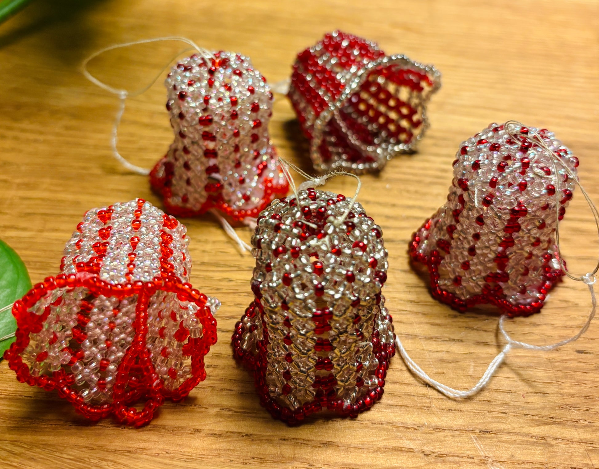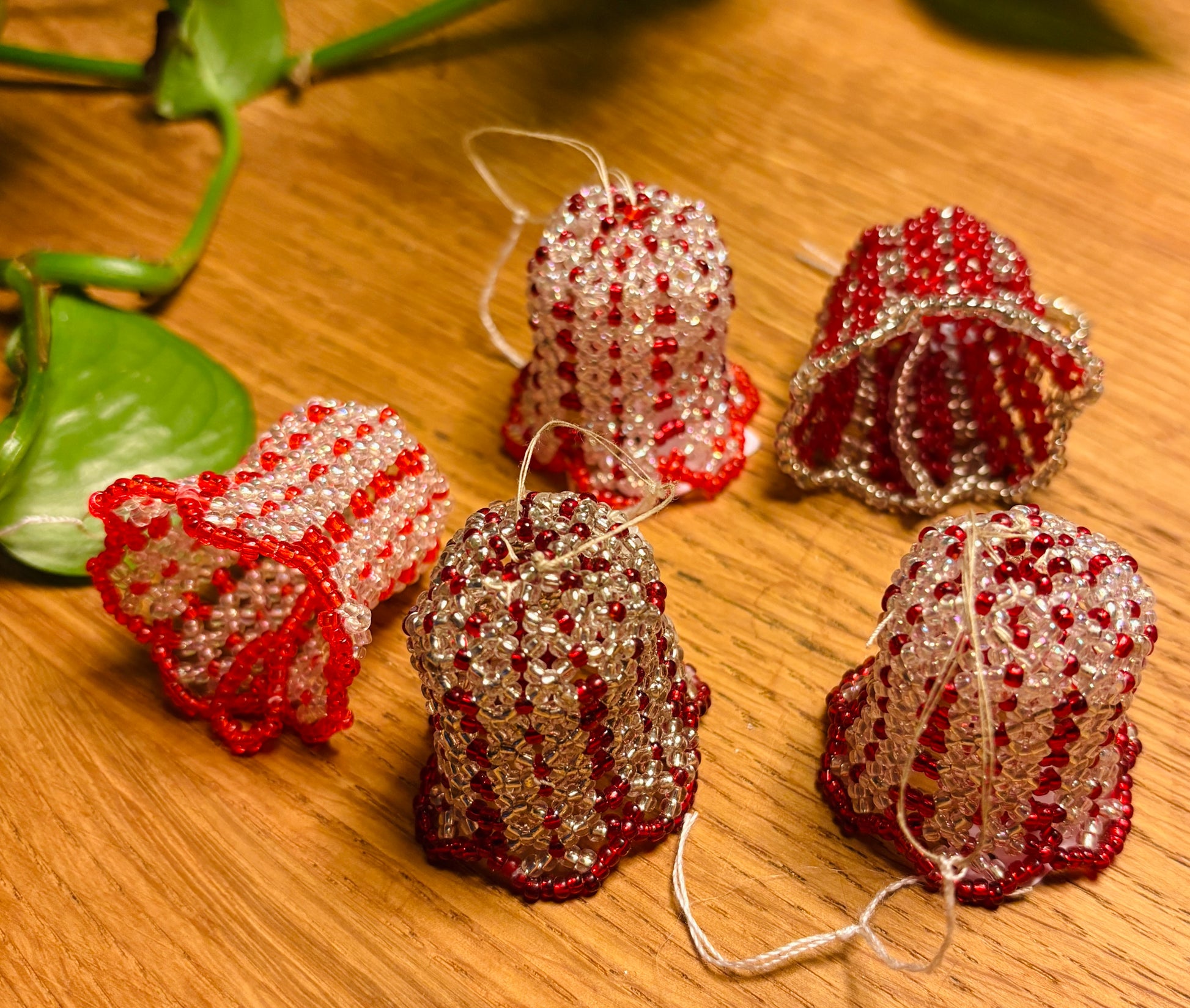 Sæt med fem fine håndlavede klokker, perfekte til pynt på juletræet.