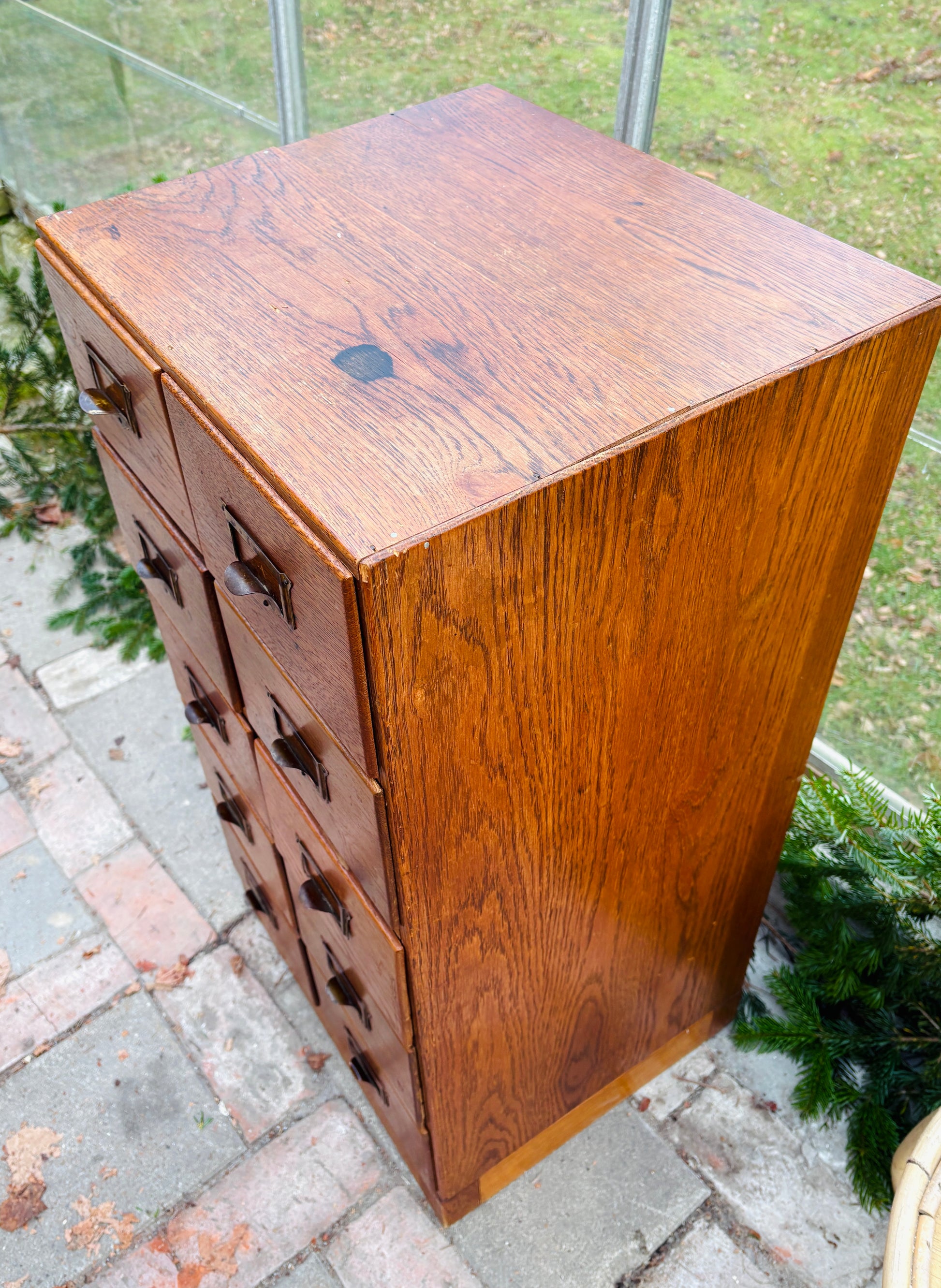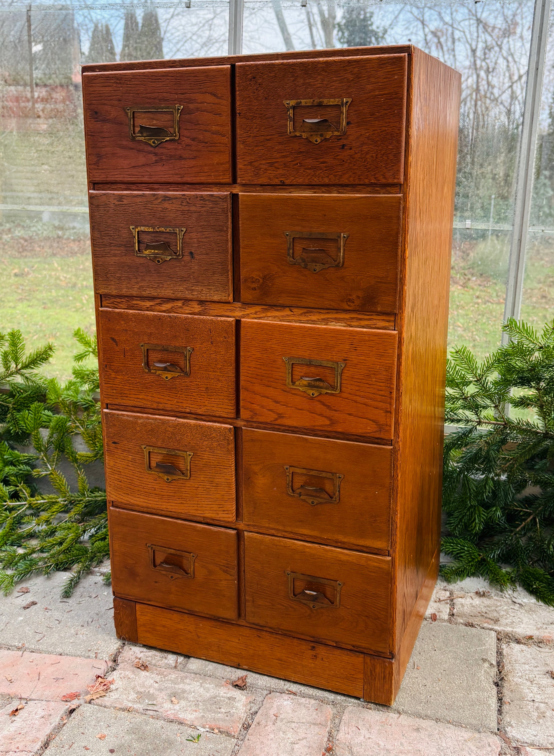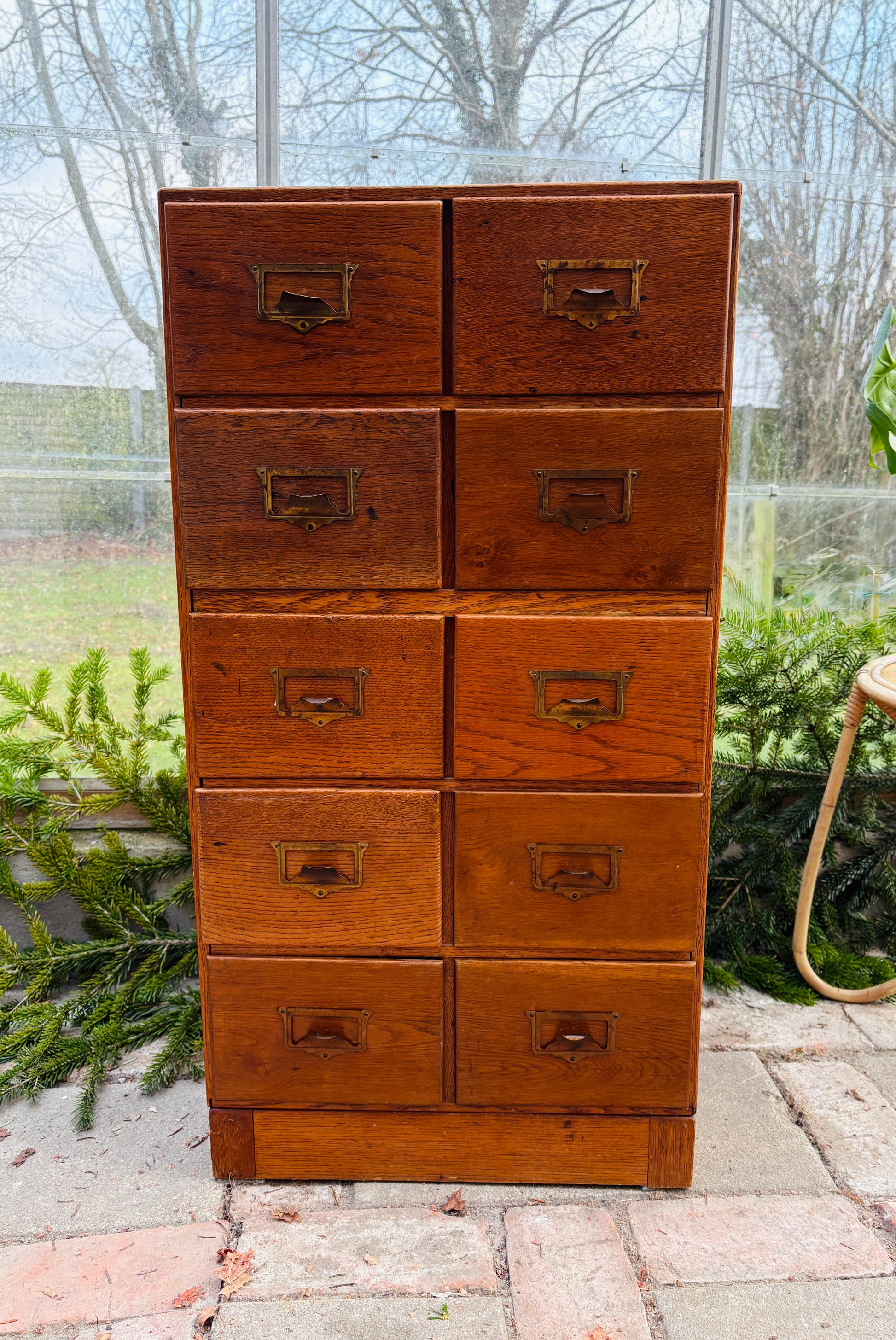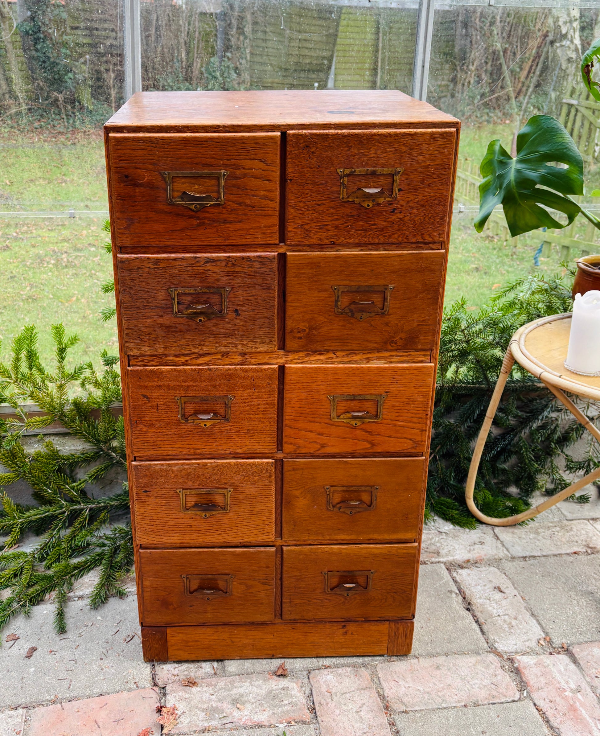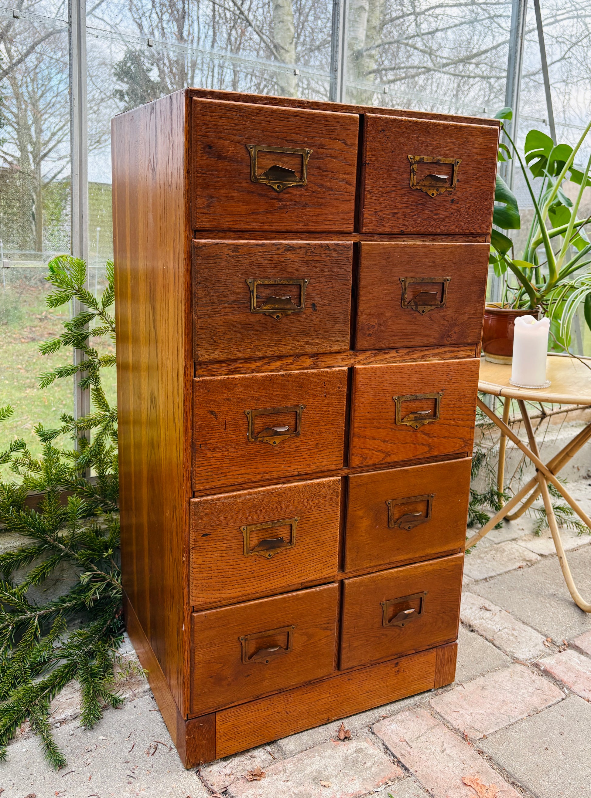 Arkivskab med 10 skuffer og patinerede messinggreb