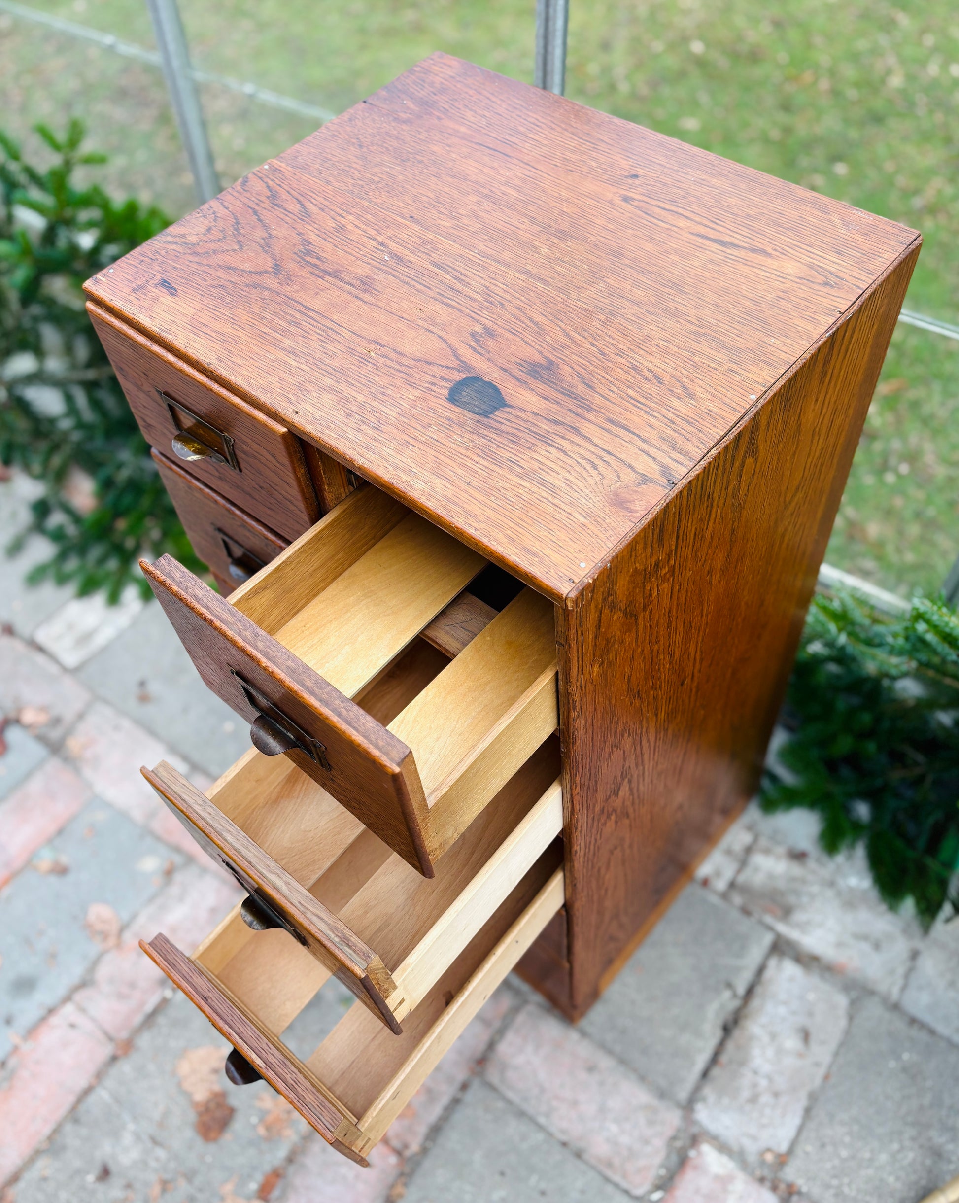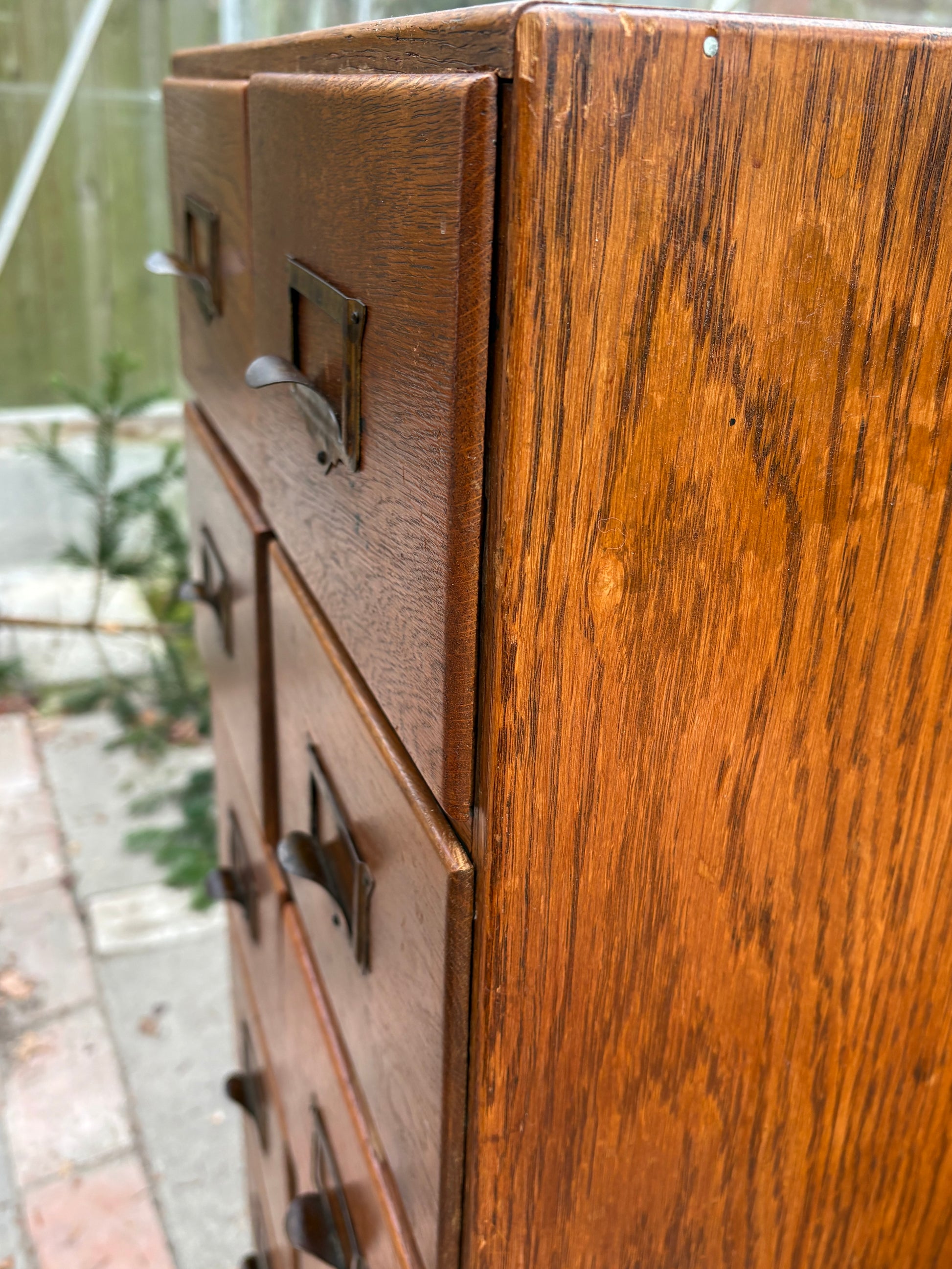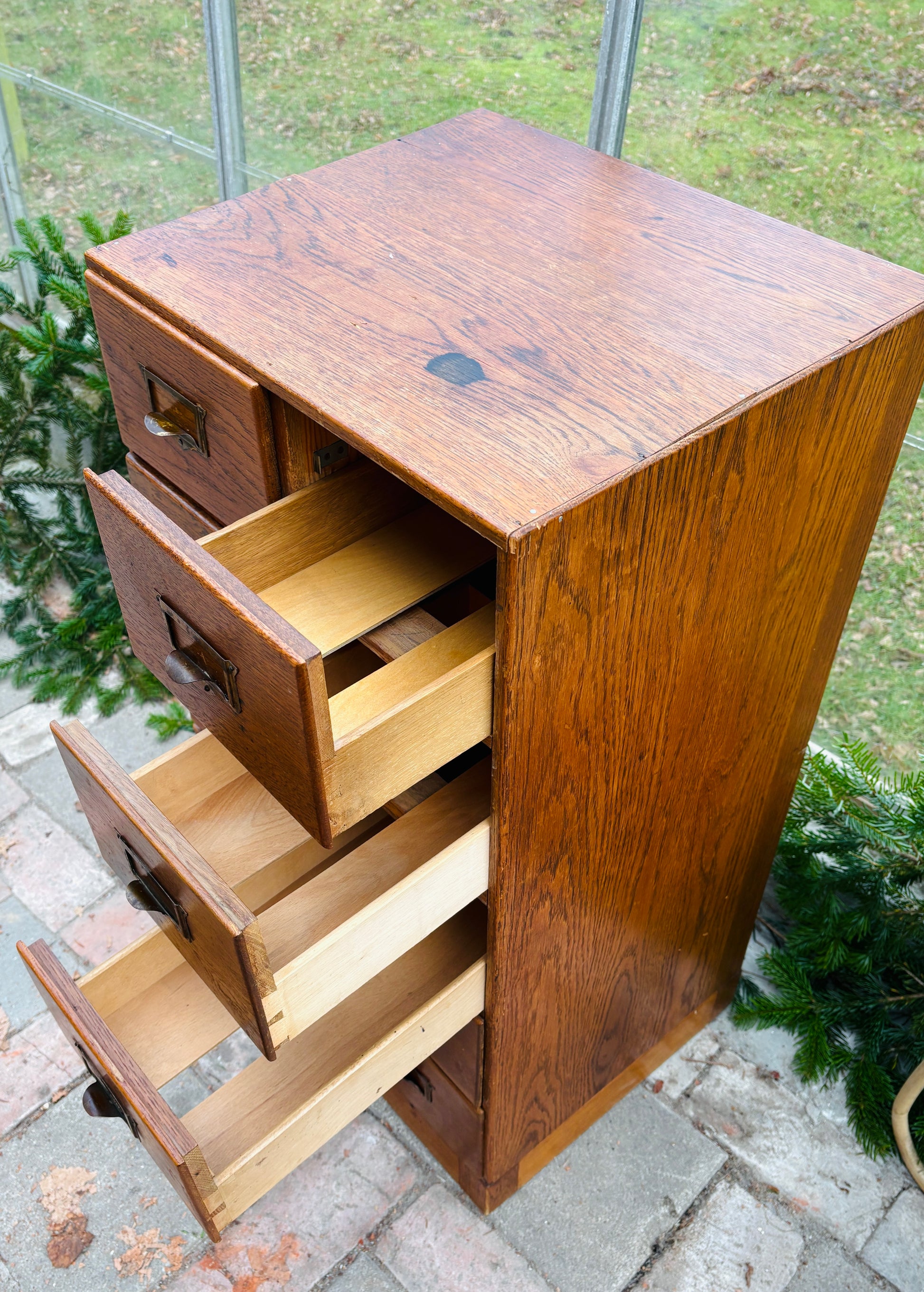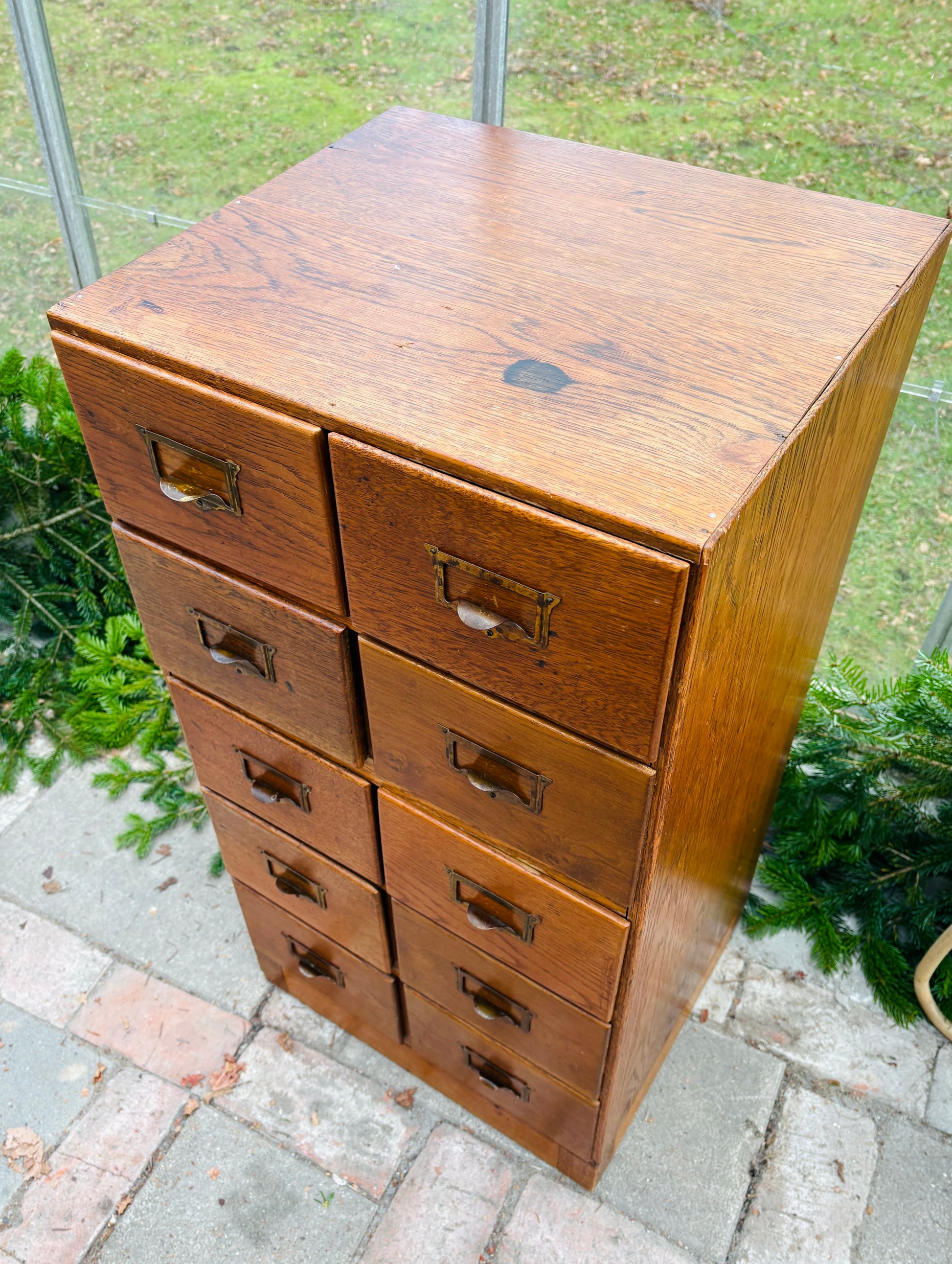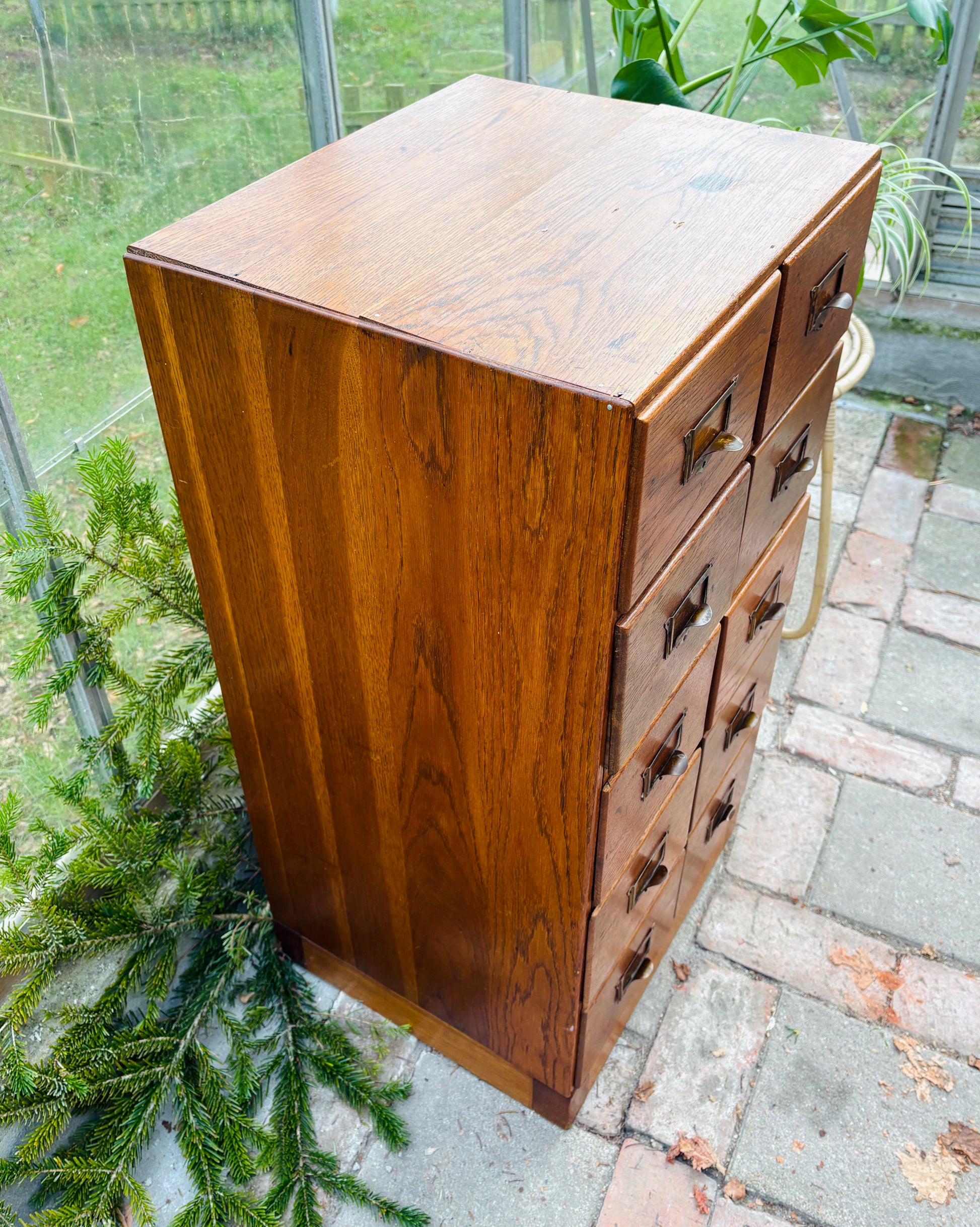 Arkivskab med 10 skuffer og patinerede messinggreb