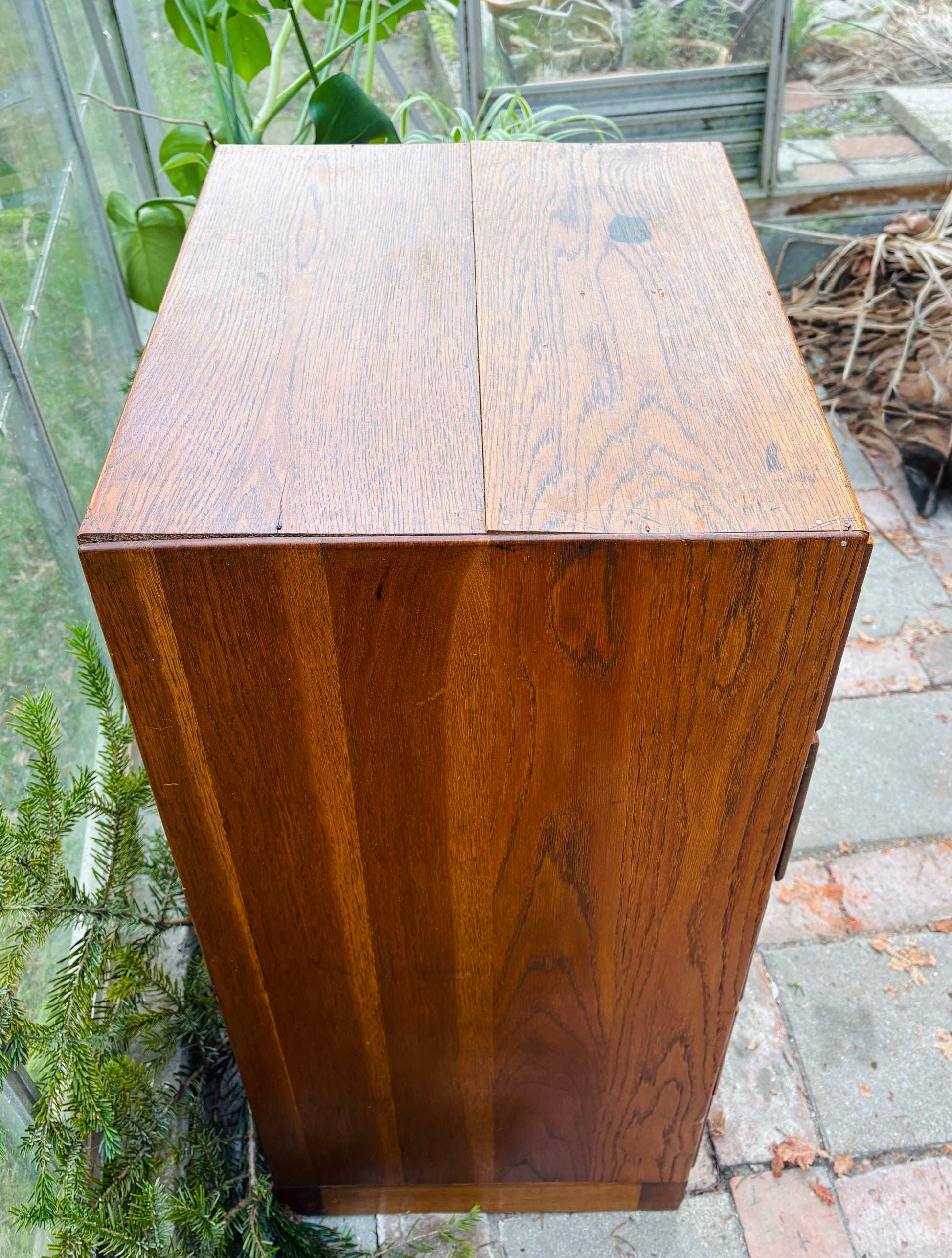 Klassisk arkivskab med 10 skuffer og originale patinerede messinggreb. Et funktionelt møbel med et tidløst udtryk. Overfladen har en naturlig patina, som giver skabet karakter og dybde.
