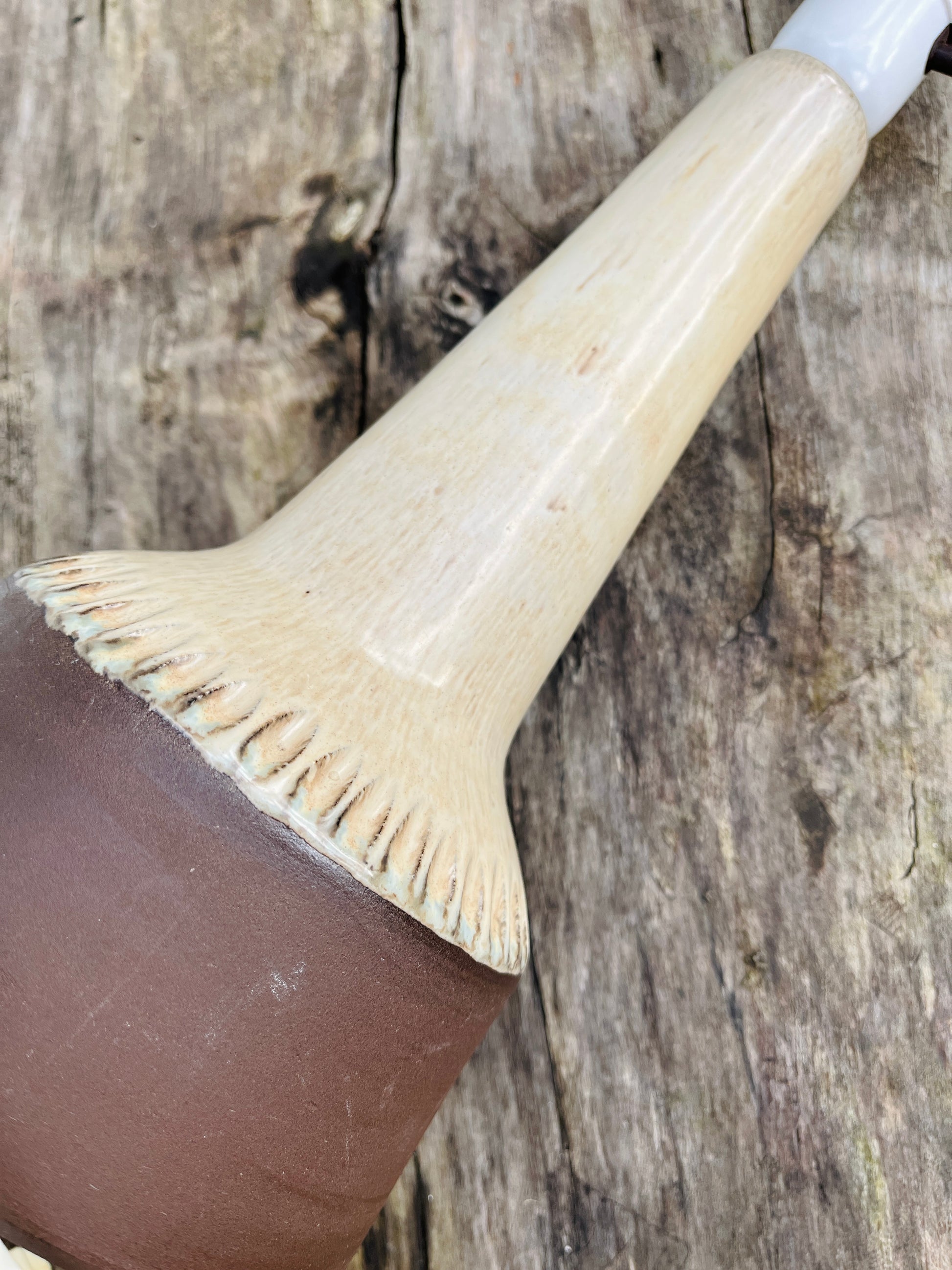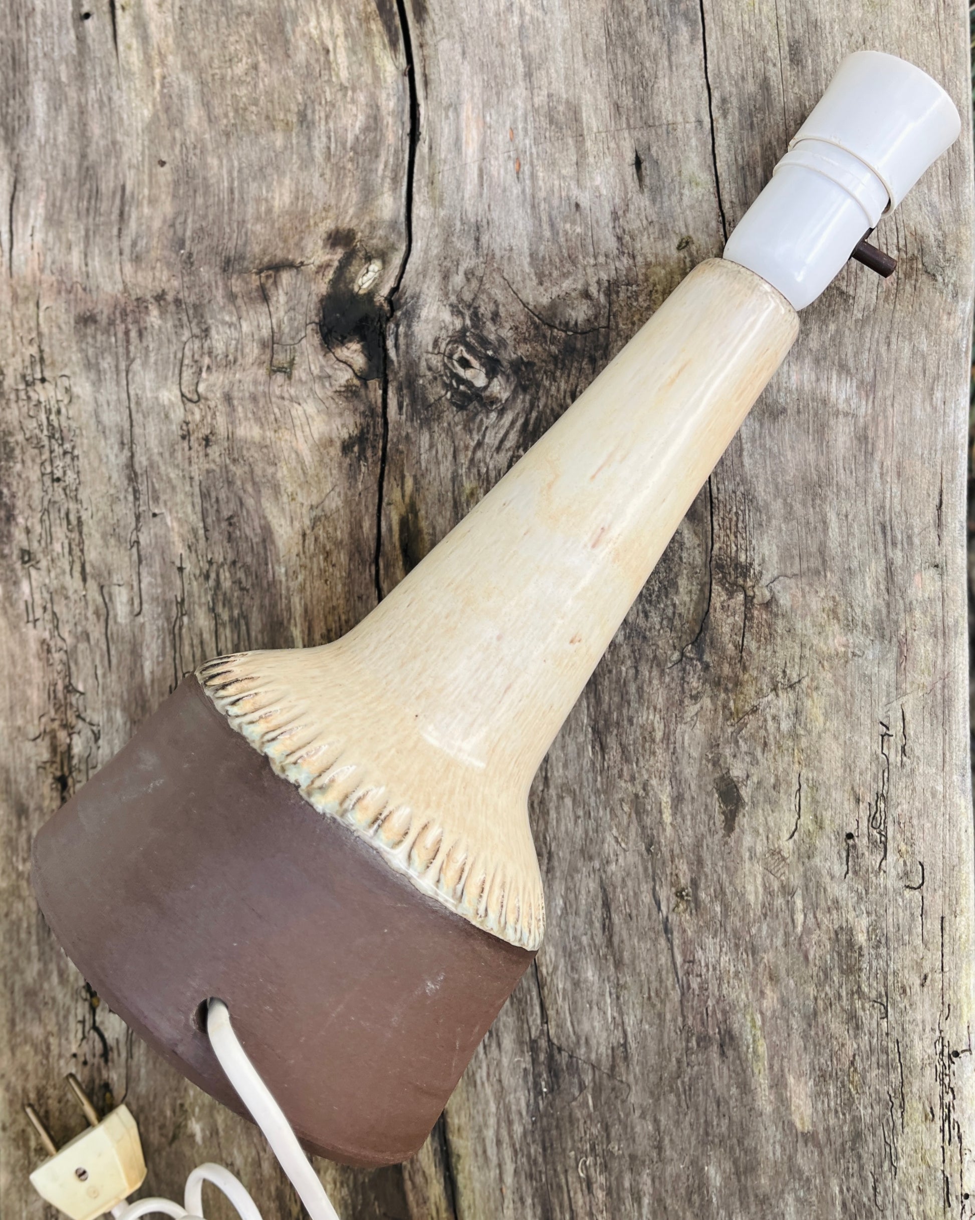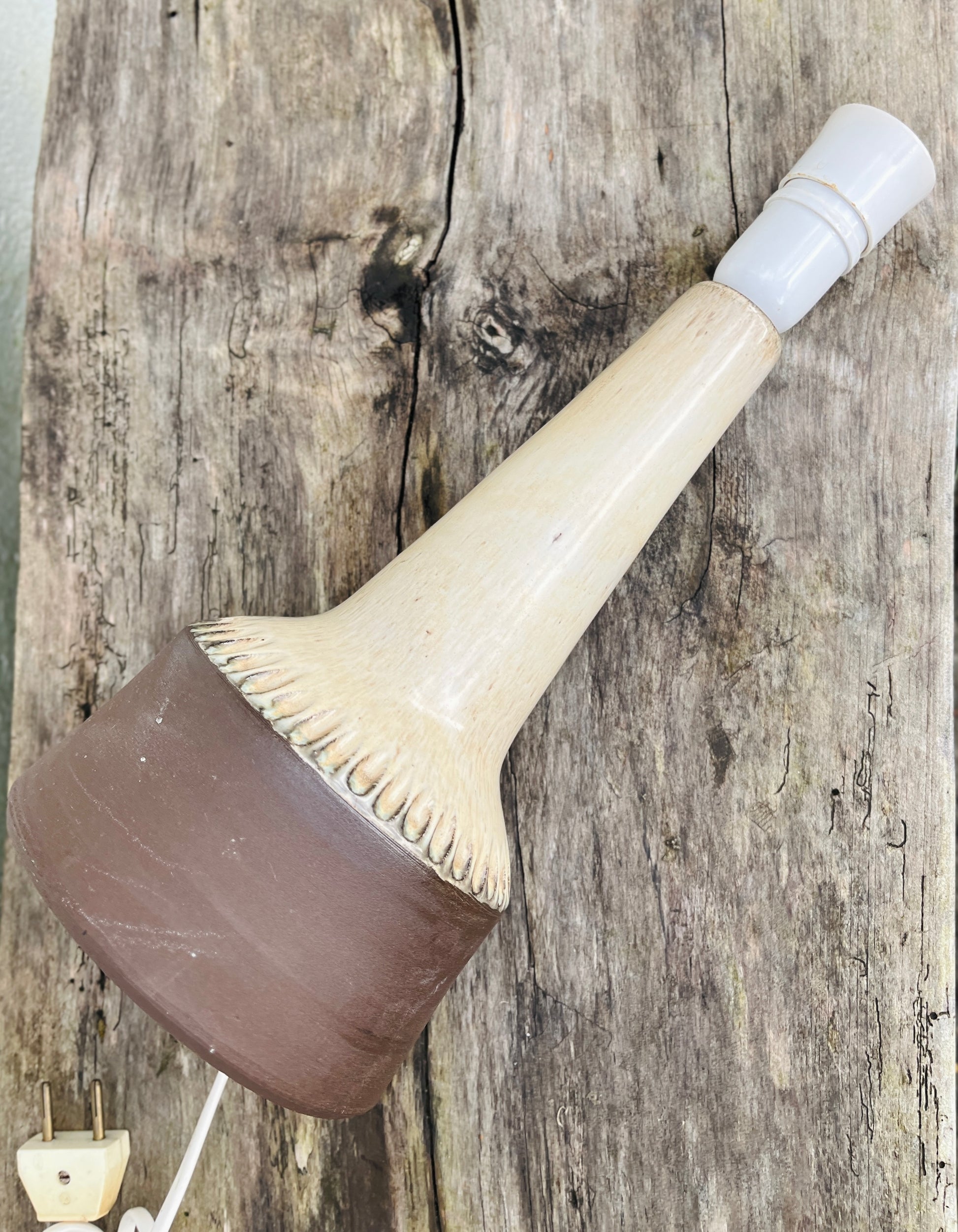Bordlampe i delvis glaseret stentøj - base brun, beige glasur. Smukt design, lækker vintage lampe af for os ukendt keramiker.
