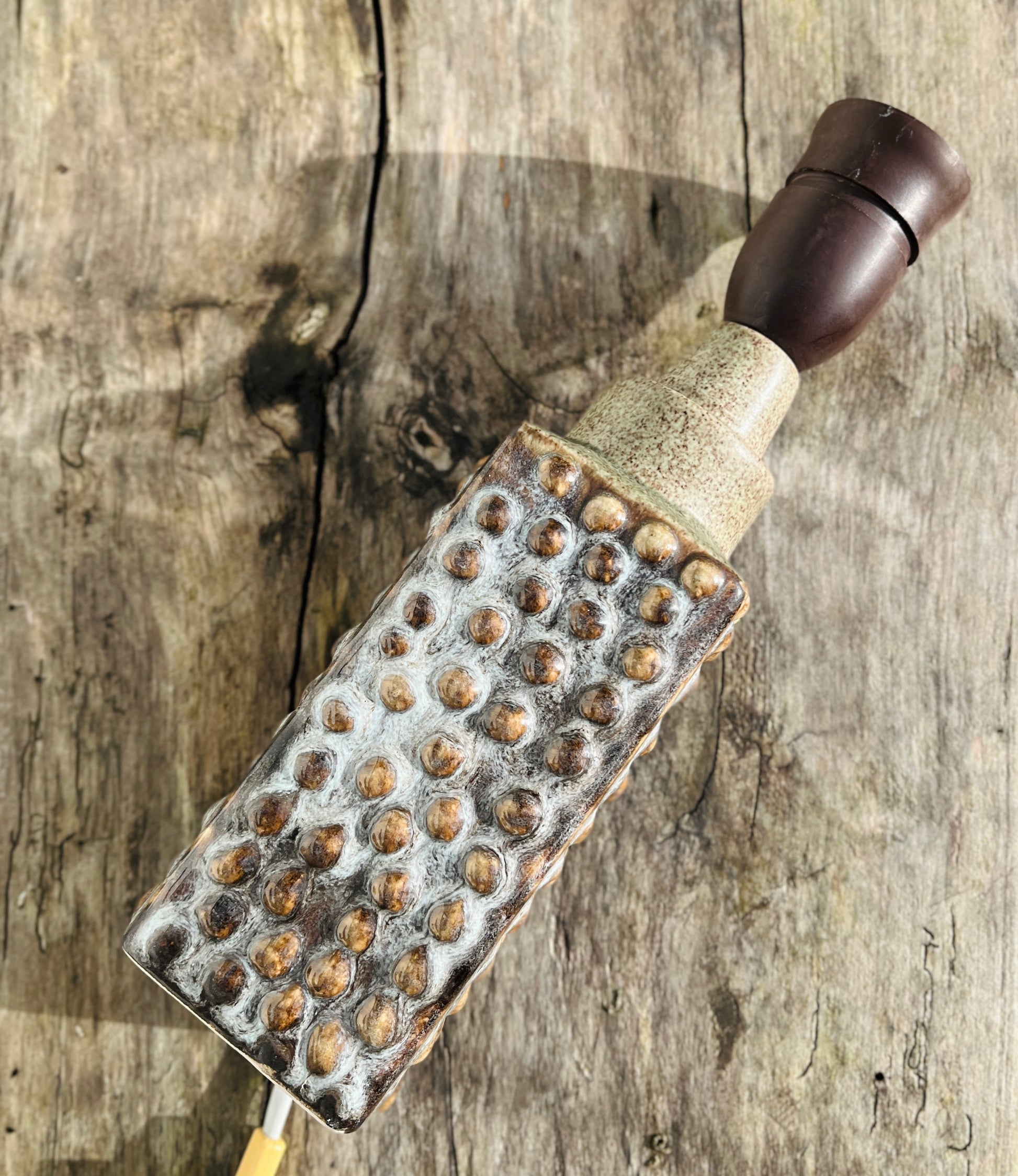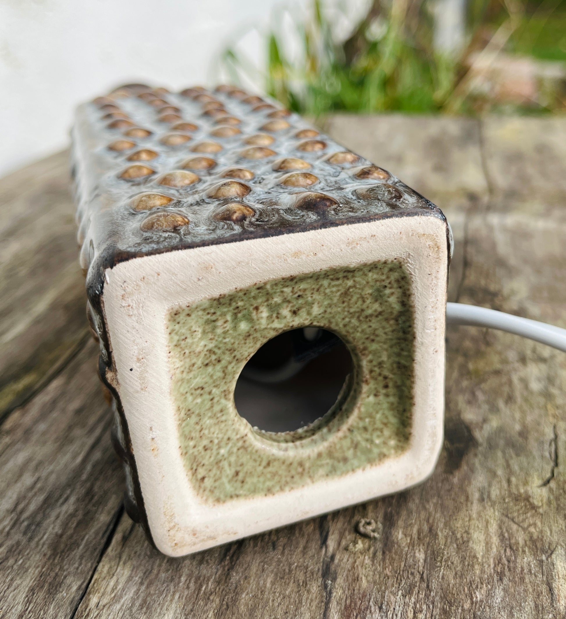 P.M. Keramik bordlampe med prikket relief. Signeret. Et klassisk stykke dansk vintage, fremstillet i Danmark i 1960’erne.