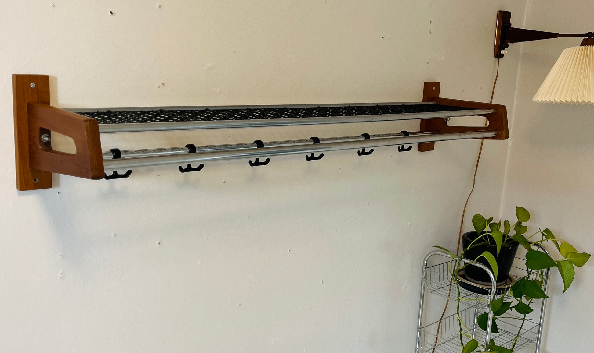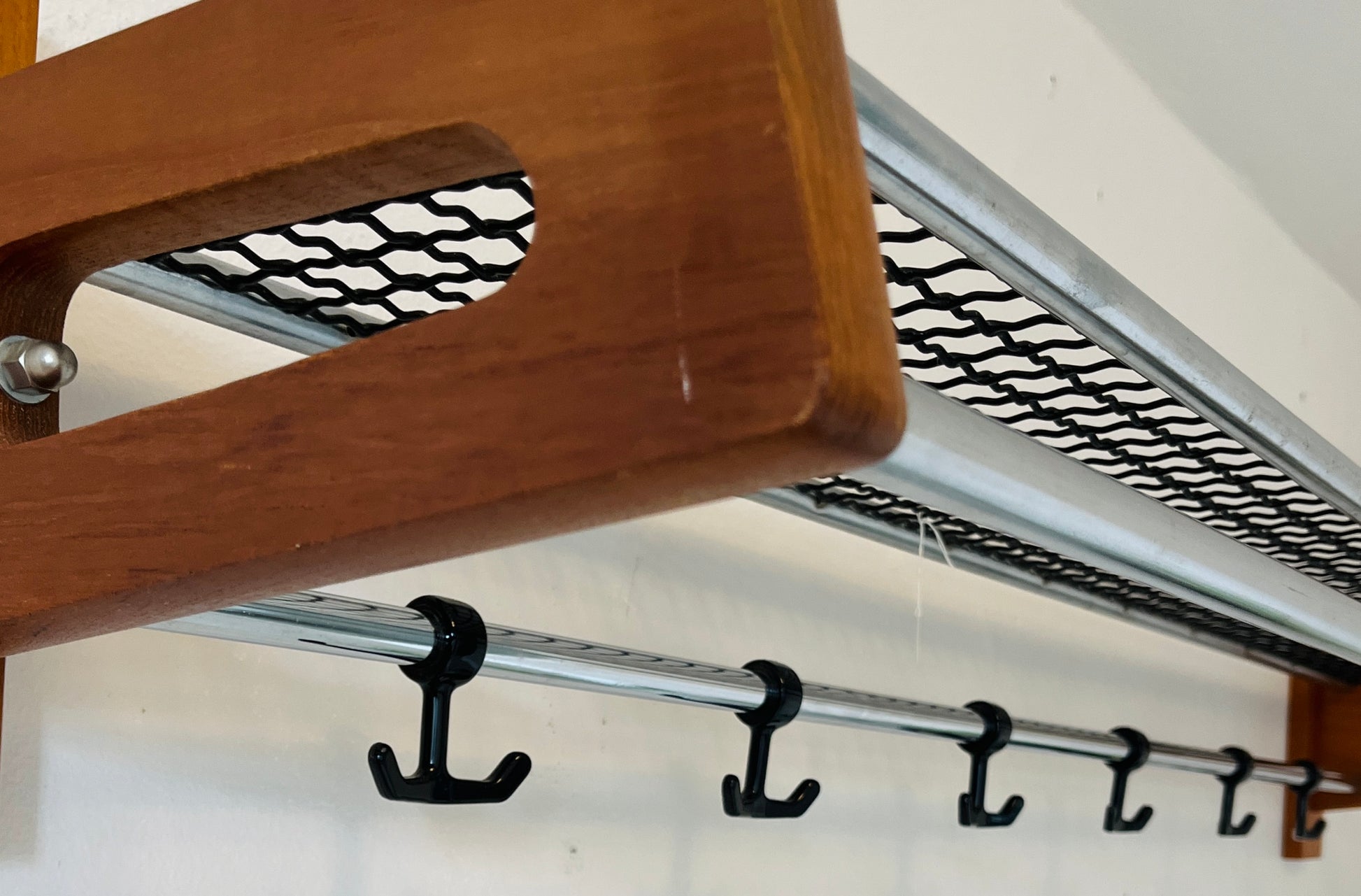 Svensk hattehylde af teak og krom. Fra 1960erne.