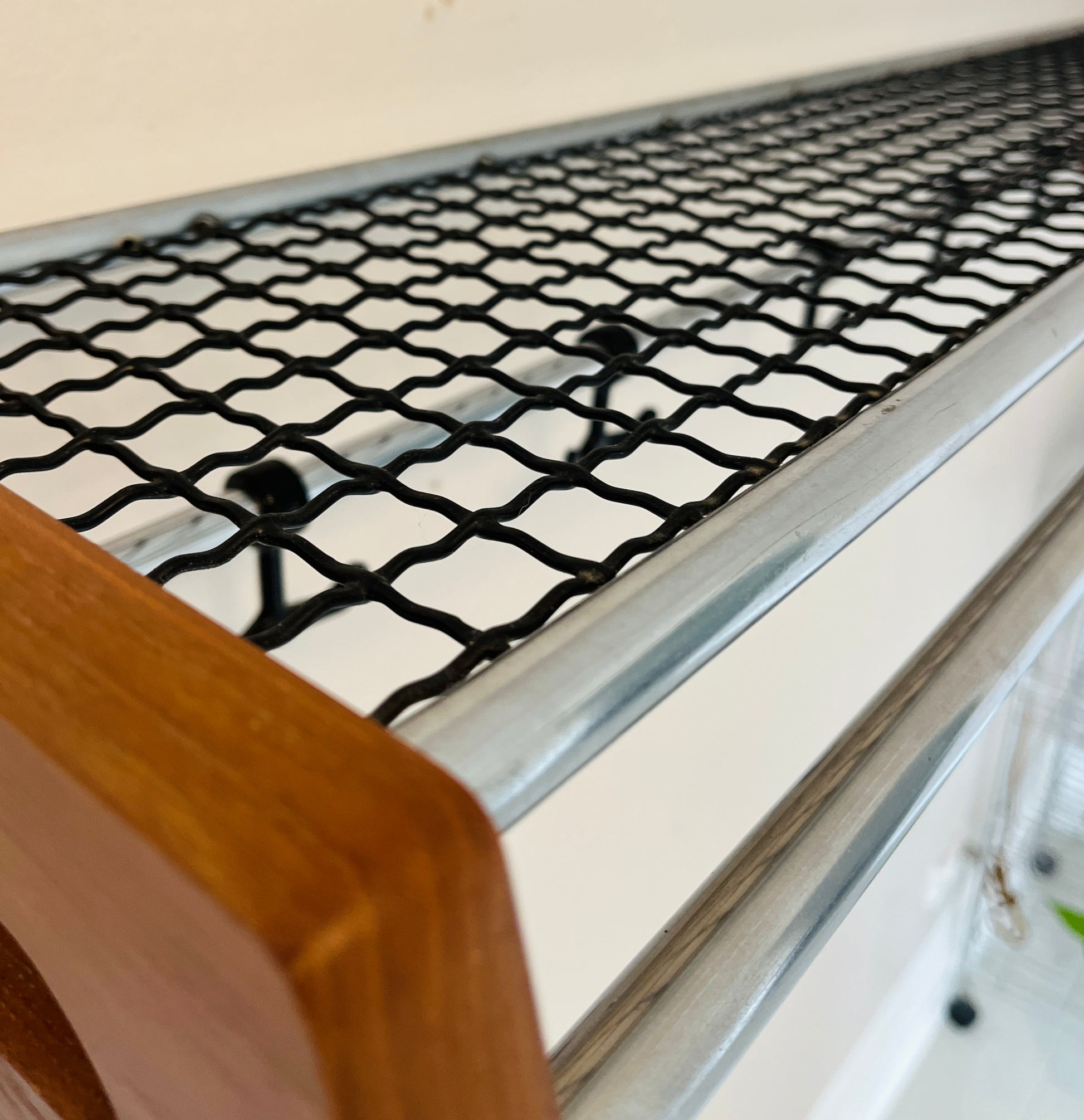 Hattehylden har en bøjlestang af krom, 6 knager samt net af plast. Intakt med aldersbetinget patina.