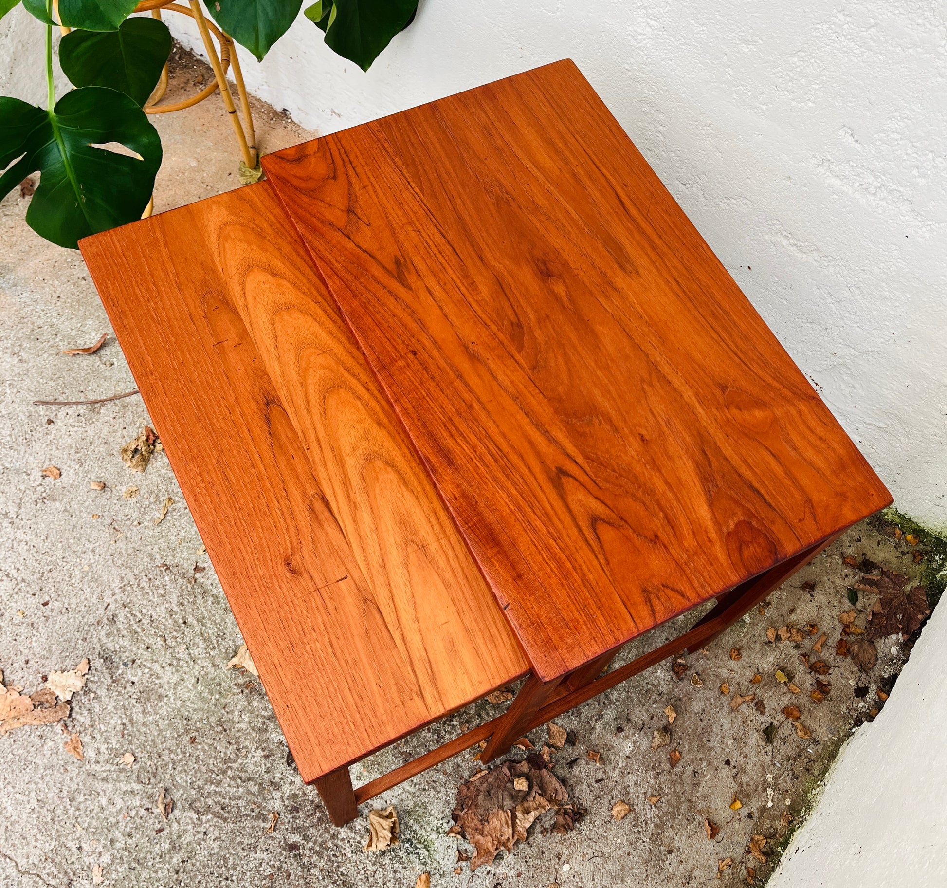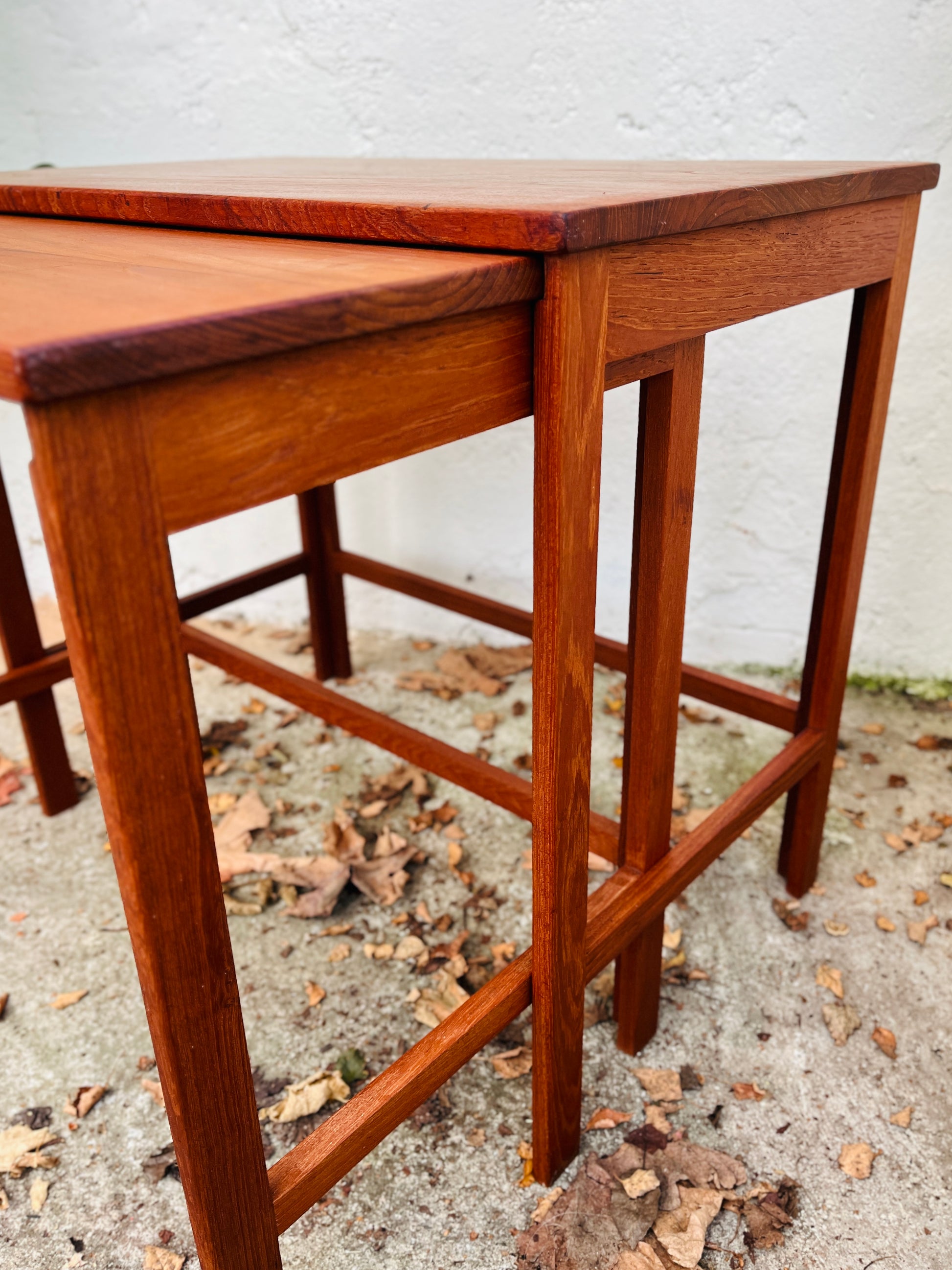 Bordene står i smukt teak og kan bruges samlet eller hver for sig. Et klassisk og eftertragtet design fra 1960’erne, der passer ind i både moderne og vintage-inspirerede hjem.