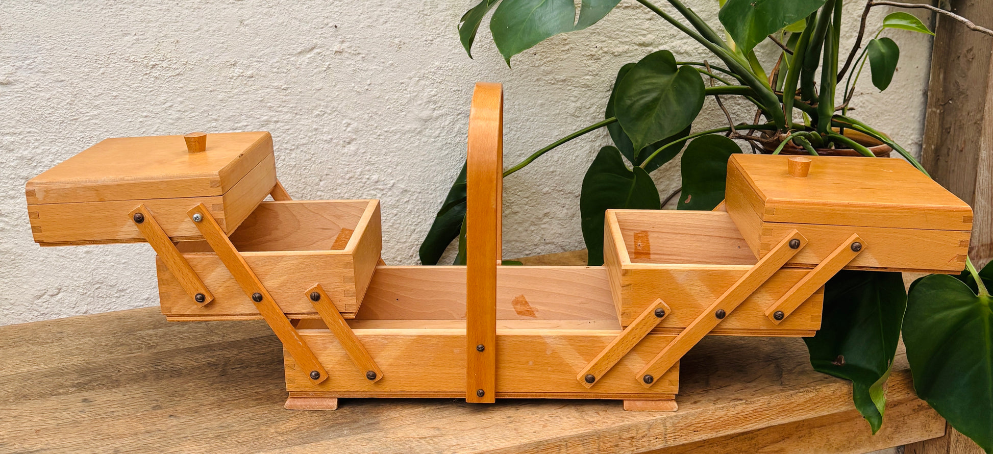 Retro syskrin med klassisk udtræk i god vintage stand. Praktisk opbevaring med tydeligt retro-præg.